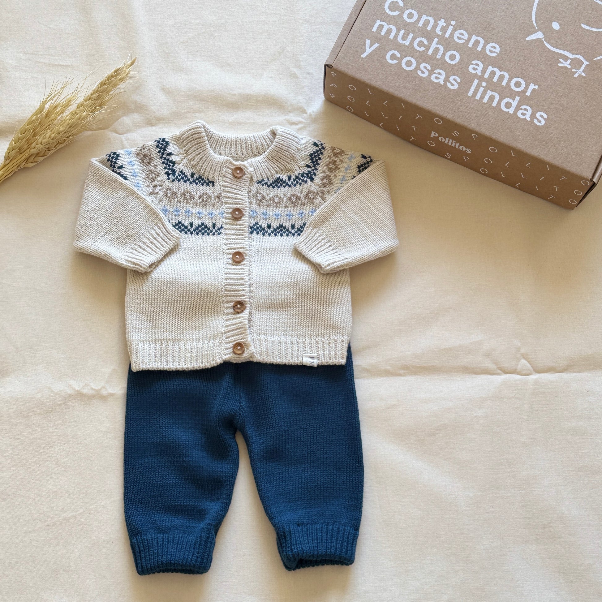 Conjunto tejido - Azul y beige