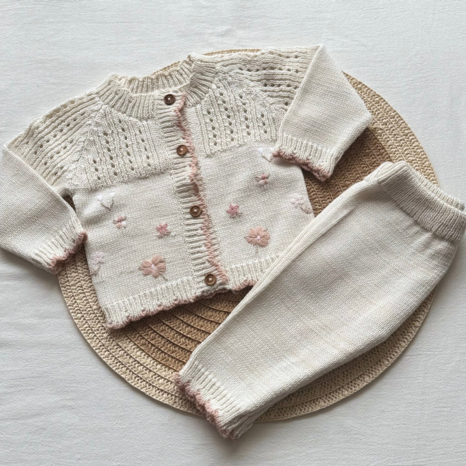 Conjunto de saco y pantalón tejidos en hilo de algodón
