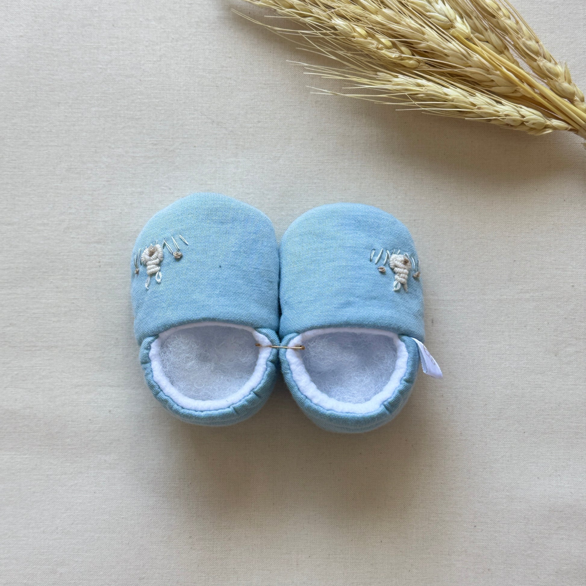 Zapatitos - Celeste oscuro con conejito crema